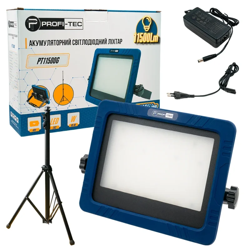 Акумуляторний гібридний прожектор на штативі PROFI-TEC PT11500G POWERLine (без акумулятора та зарядного пристрою)