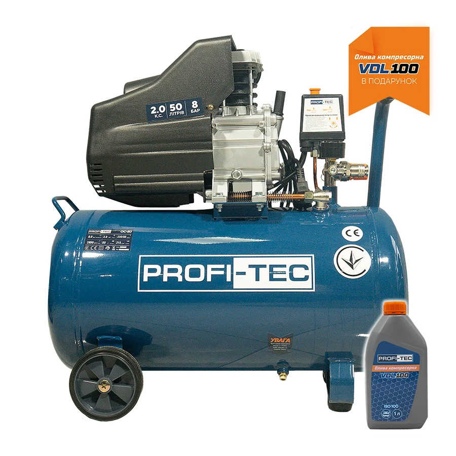 Компресор масляний PROFI-TEC OC-50 (50 л, 1.5 кВт, 200 л/хв)