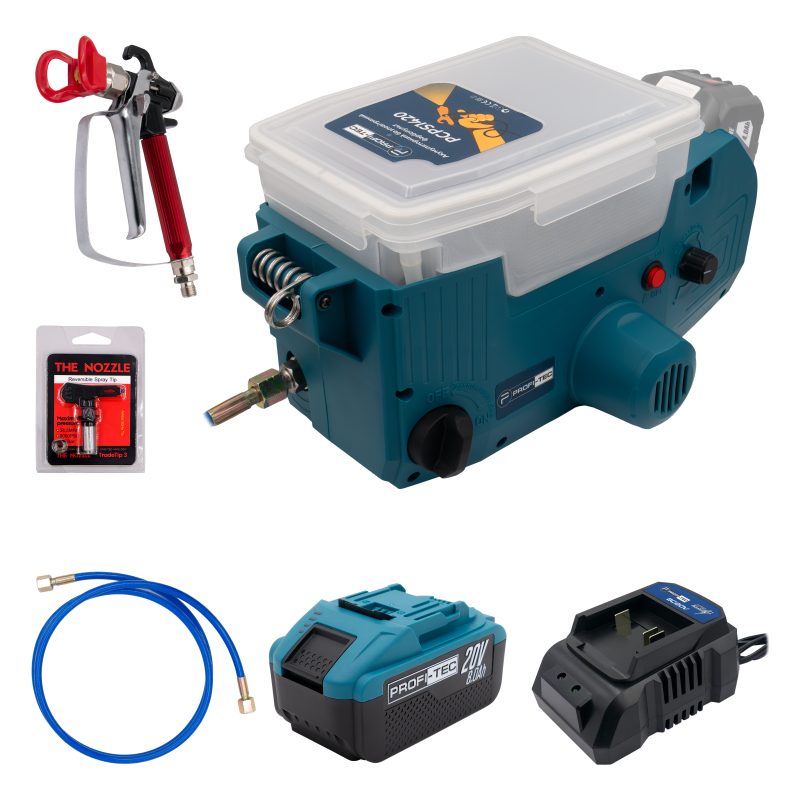 Акумуляторний безповітряний фарбопульт PROFI-TEC PCPS1420 POWERLine (1×PT2080EP (8.0 Аг), зарядний пристрій)