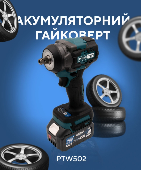 Акумуляторний гайковерт PROFI-TEC PPTW4520 POWERLine (2×PT2040VX (4.0 Аг), зарядний пристрій)