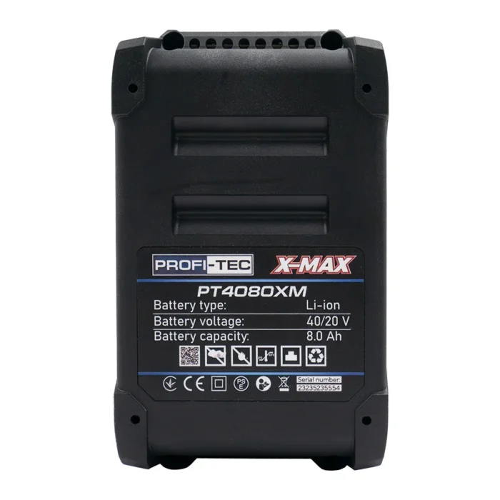Акумуляторна батарея PT4080XM із лінійки X-MAX сумісна з усіма інструментами PROFI-TEC серії POWERLine, забезпечуючи стабільну та ефективну роботу.