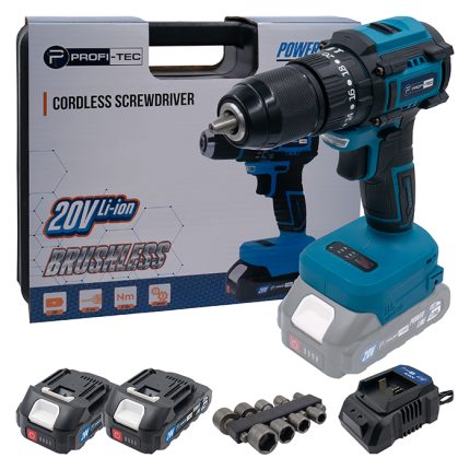 Акумуляторний шуруповерт PROFI-TEC PCD4020BL POWERLine (2×PT2020MP (2.0 Аг), зарядний пристрій)