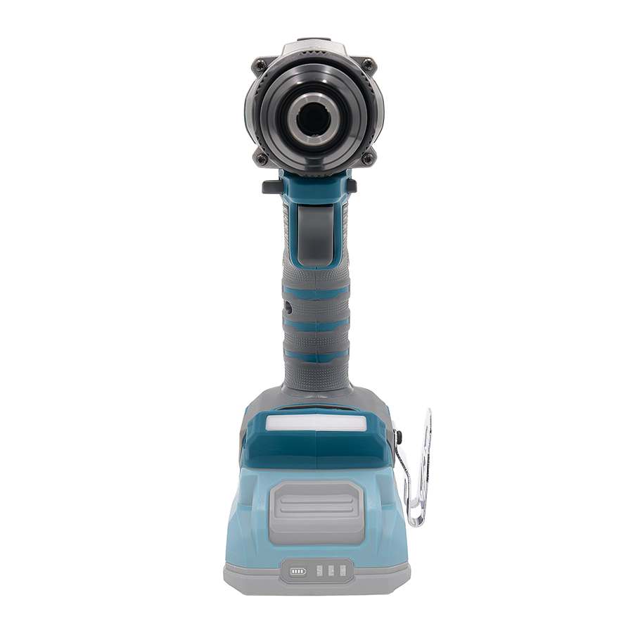 - Металевий патрон 13 мм гарантує надійну фіксацію оснастки та сумісність зі стандартними свердлами й бітами.