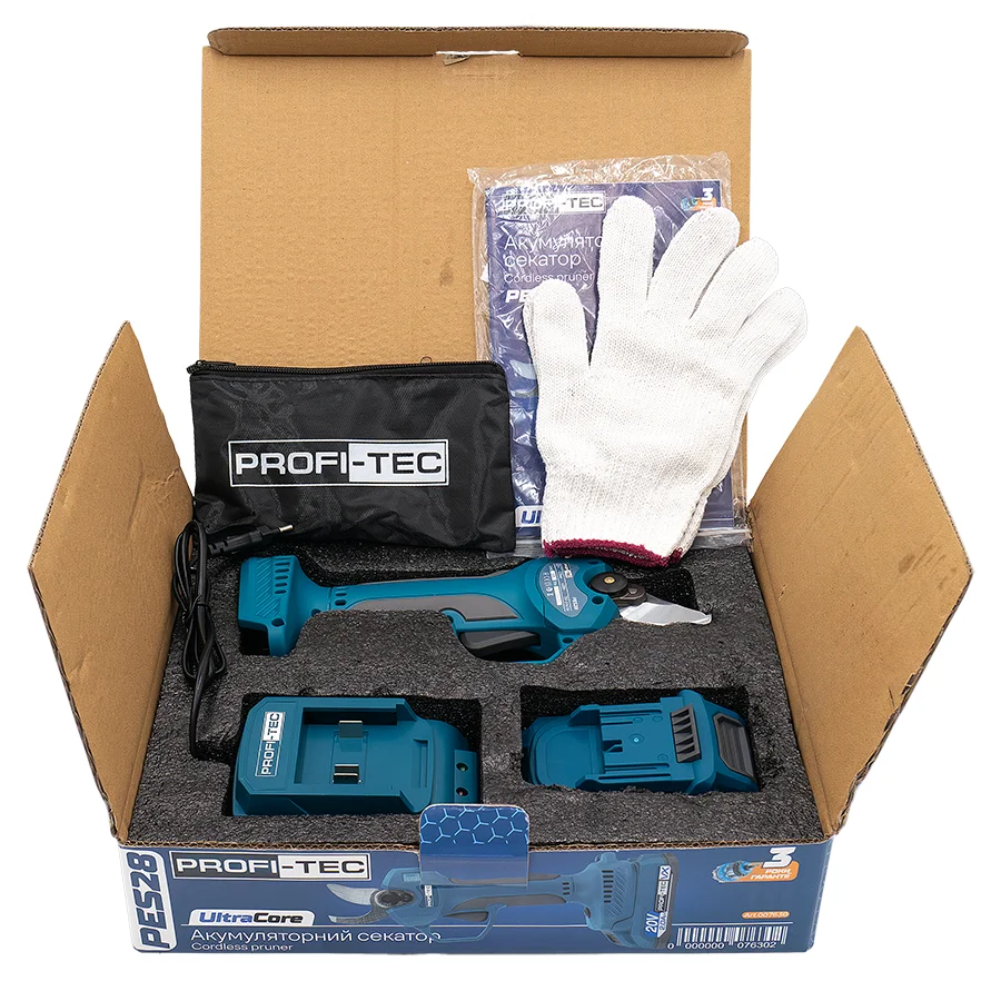 Акумуляторний секатор PROFI-TEC PES25 UltraCore (1×PT2020VX (2.0 Аг), зарядний пристрій)