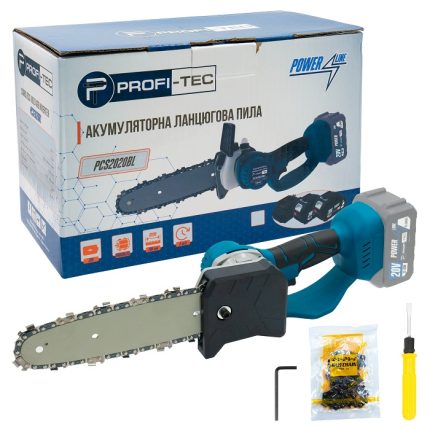 Акумуляторна ланцюгова пила PROFI-TEC PCS2020BL – зручний та надійний інструмент, призначений для розпилювання дощок, обрізання деревних гілок, чагарників та невеликих