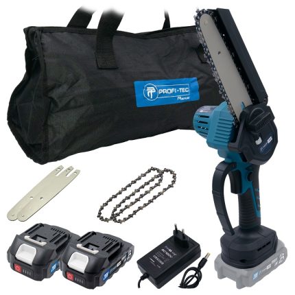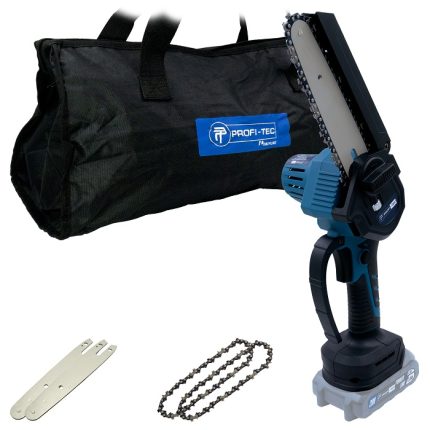 Акумуляторна ланцюгова пила PROFI-TEC PCS2020BL – зручний та надійний інструмент, призначений для розпилювання дощок, обрізання деревних гілок, чагарників та невеликих дерев’яних